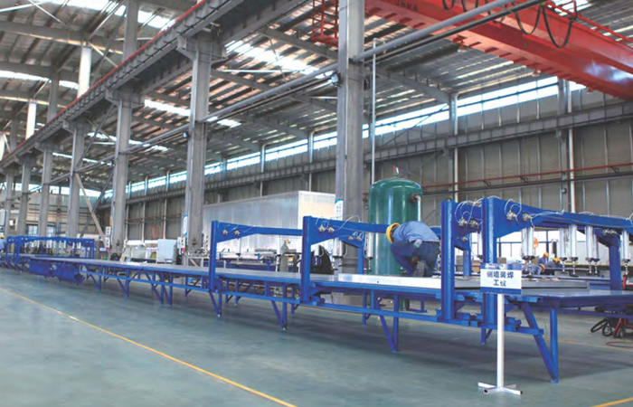 - 年產(chǎn)20萬平方米鋁合金建筑模板及爬架生產(chǎn)線,裝備有焊接機(jī)器人、自動(dòng)拋丸機(jī)、自動(dòng)噴涂設(shè)備、80T-160T系列液壓沖床、高精度數(shù)控定位單頭切割鋸、數(shù)控任意角度切割鋸等先進(jìn)設(shè)備。